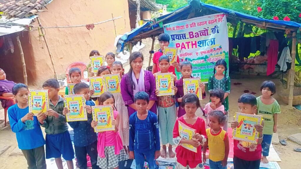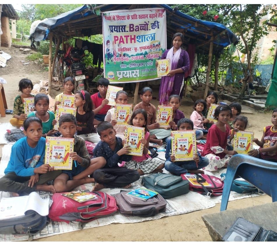 इसी क्रम में प्रयास सामाजिक सेवा समिति की पहल पर उसने अपने घर के आंगन में ही प्रयास बच्चों की पाठशाला स्थापित की जिसमें शुरुआती तीन चार दिनों में ही करीब दो दर्जन शिशु बालक- बालिकाये नियमित रूप से अपने घर से बिछौना पट्टी लेकर पढ़ने आने लगी हैं। गत दिवस गाँव पहुँच कर प्रयास सामाजिक सेवा समिति के अध्यक्ष अजय भाटिया ने बहुउपयोगी प्रयास ज्ञान पुस्तकें उपलब्ध कराने के साथ ही बच्चों के बैठने हेतु दरी व अन्य आवश्यकताओं को पूरा करने की बात कही। आने वाले समय में यह प्रयास नि: संदेह सार्थक सिद्व होगा।