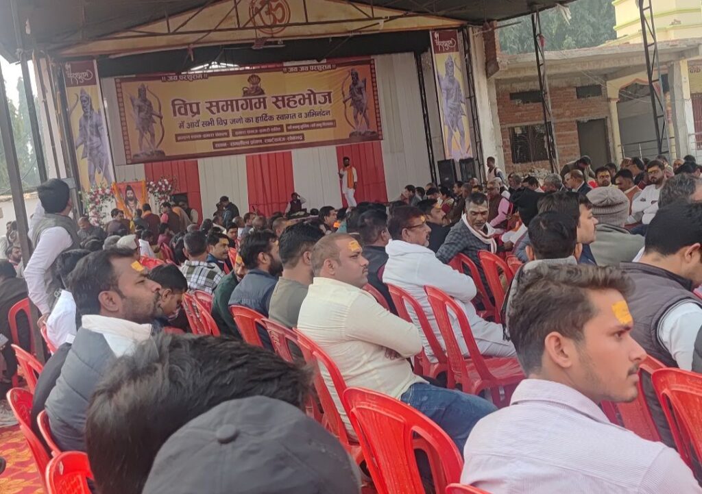 आज रॉबर्ट्सगंज स्थित रामलीला मैदान में विप्र समागम सहभोज कार्यक्रम का आयोजन किया गया, जिसमें हजारों की संख्या में ब्राह्मण समाज के लोग शामिल हुए। कार्यक्रम का मुख्य उद्देश्य समाज की वर्तमान राजनीतिक, सामाजिक और आर्थिक परिस्थितियों पर चर्चा करना तथा भविष्य की रणनीति तय करना रहा।
