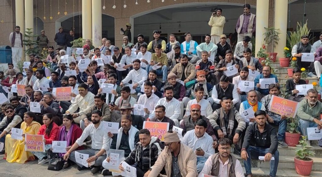 जिले के कलेक्ट्रेट परिसर में मंगलवार को सैकड़ों की संख्या में सवर्ण समाज के लोग एकत्र हुए और विश्वविद्यालय अनुदान आयोग (यूजीसी) के नियमों में हाल ही में किए गए संशोधन के विरोध में प्रदर्शन किया। प्रदर्शनकारियों ने सरकार के विरुद्ध नारेबाजी करते हुए संशोधित नियमों को “काला कानून” करार दिया और इसे वापस लेने की मांग की।