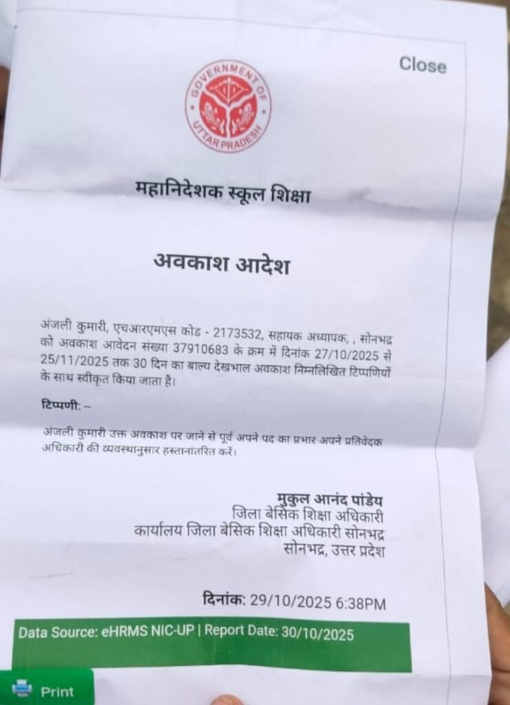 इसी विद्यालय में तैनात सहायक अध्यापिका अंजली कुमारी 27 अक्टूबर 2025 से एक माह के मातृत्व अवकाश पर थीं, बावजूद इसके उन्हें भी विद्यालय में अनुपस्थिति के आधार पर दंडित किया गया।