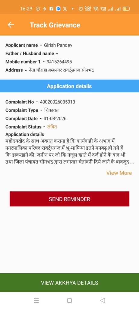 इसी मामले में शिकायतकर्ता गिरीश पाण्डेय ने आरोप लगाया गया है कि नगरपालिका परिषद रावर्ट्सगंज में भू-माफिया इतने बेलगाम हो गए हैं कि जिला पंचायत सोनभद्र और डाक विभाग की बार-बार चेतावनी के बावजूद नजूल भूमि पर अवैध अतिक्रमण जारी है।